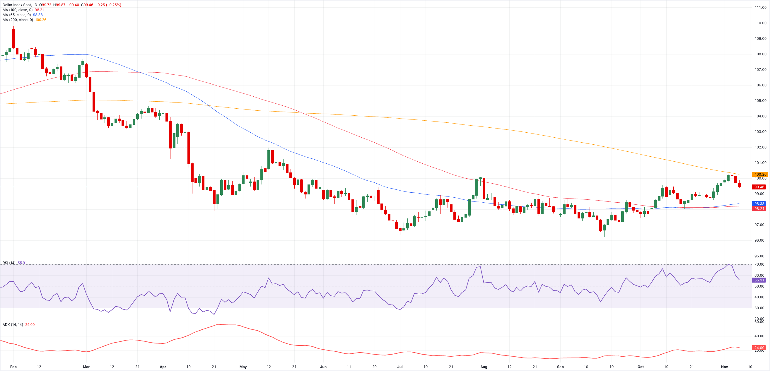 تقدم الدولار الأمريكي بأكثر من 3% منذ أدنى مستوياته السنوية التي تم الوصول إليها في منتصف سبتمبر/أيلول. ومع ذلك، تتطلب المكاسب الأكثر استدامة أن يتجاوز مؤشر الدولار الأمريكي (DXY) متوسطه المتحرك البسيط لمدة 200 يوم والذي يبلغ حوالي 100.30 بشكل حاسم.