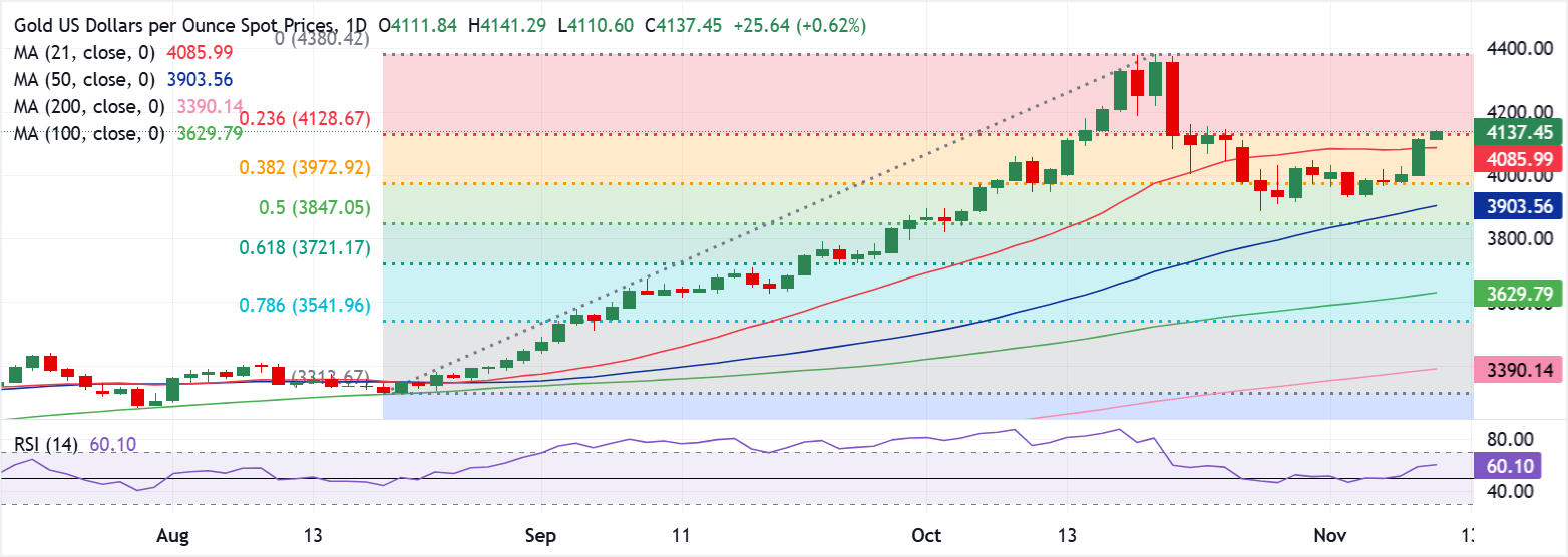 توقعات سعر الذهب: زوج الذهب/الدولار XAU/USD يستأنف الارتفاع مع اقتراب انتهاء إغلاق الحكومة الأمريكية