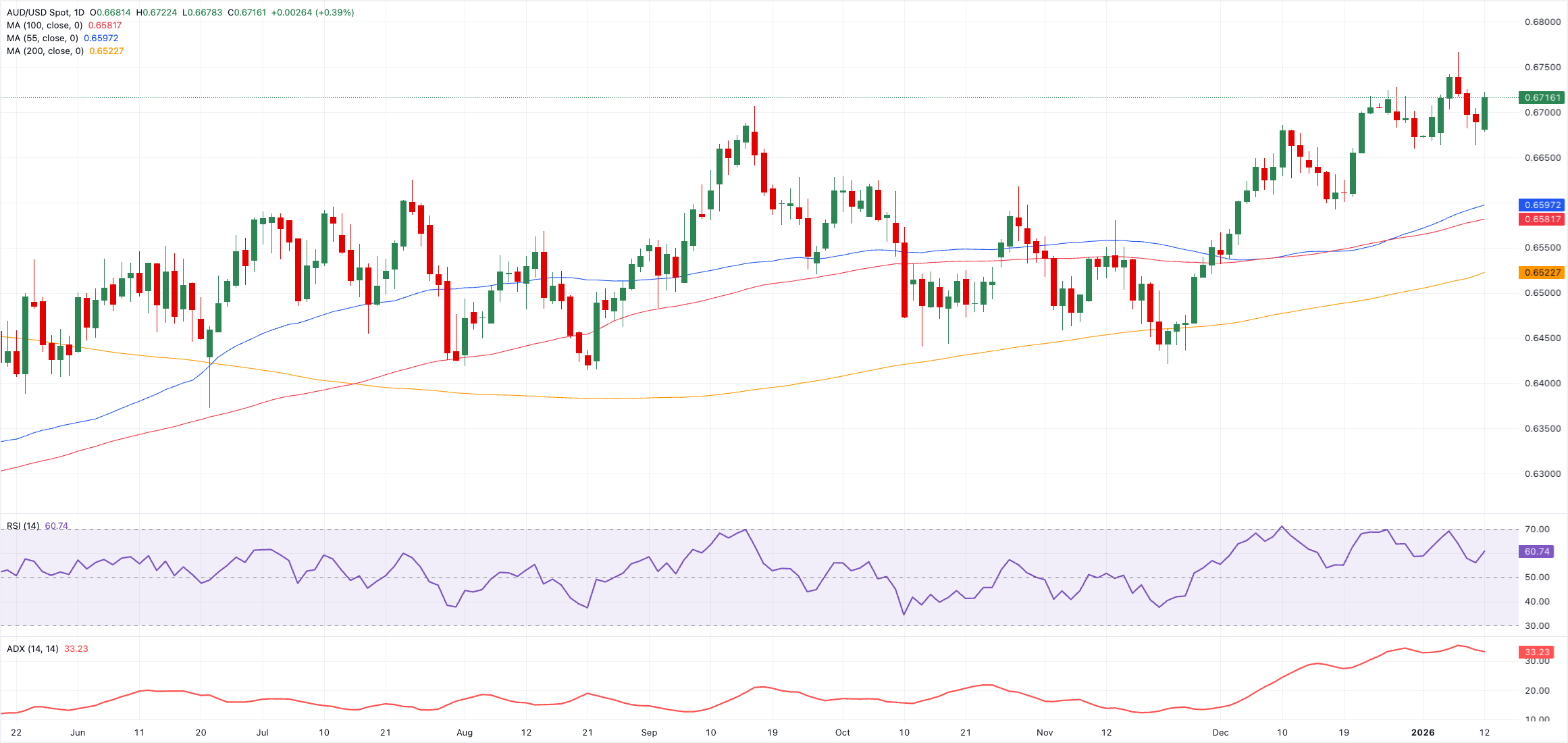 يمكن أن يضع استمرار التعافي الجاري زوج الدولار الأسترالي/الدولار الأمريكي AUD/USD في طريقه إلى سقف 2026 عند 0.6766 (7 يناير/كانون الثاني)، قبل القمة في 2024 عند 0.6942 (30 سبتمبر/أيلول)، والحاجز السعري 0.7000.