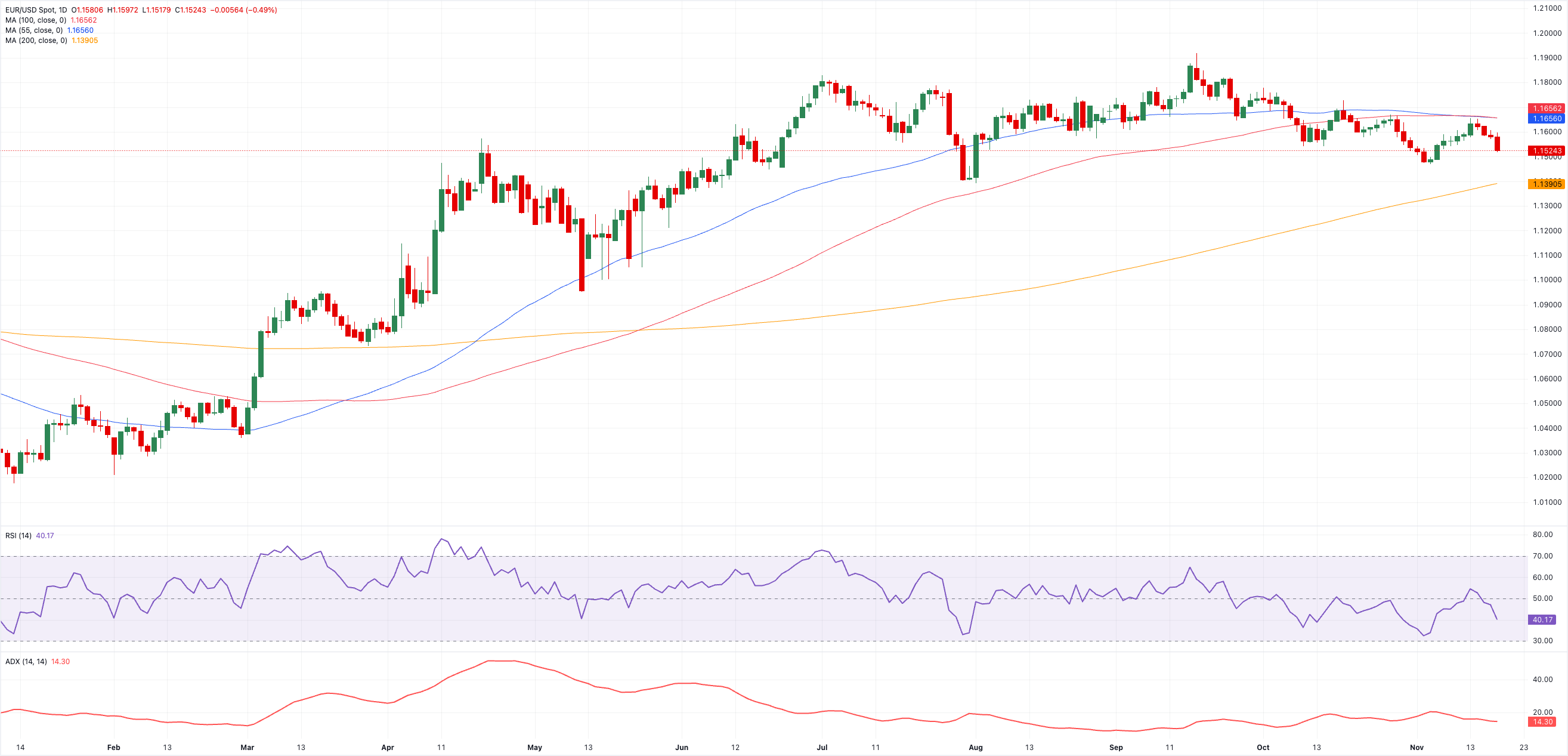 - تراجع زوج يورو/دولار EUR/USD أكثر يوم الأربعاء، مسجلاً أدنى مستوياته خلال أسبوعين بالقرب من 1.1530.