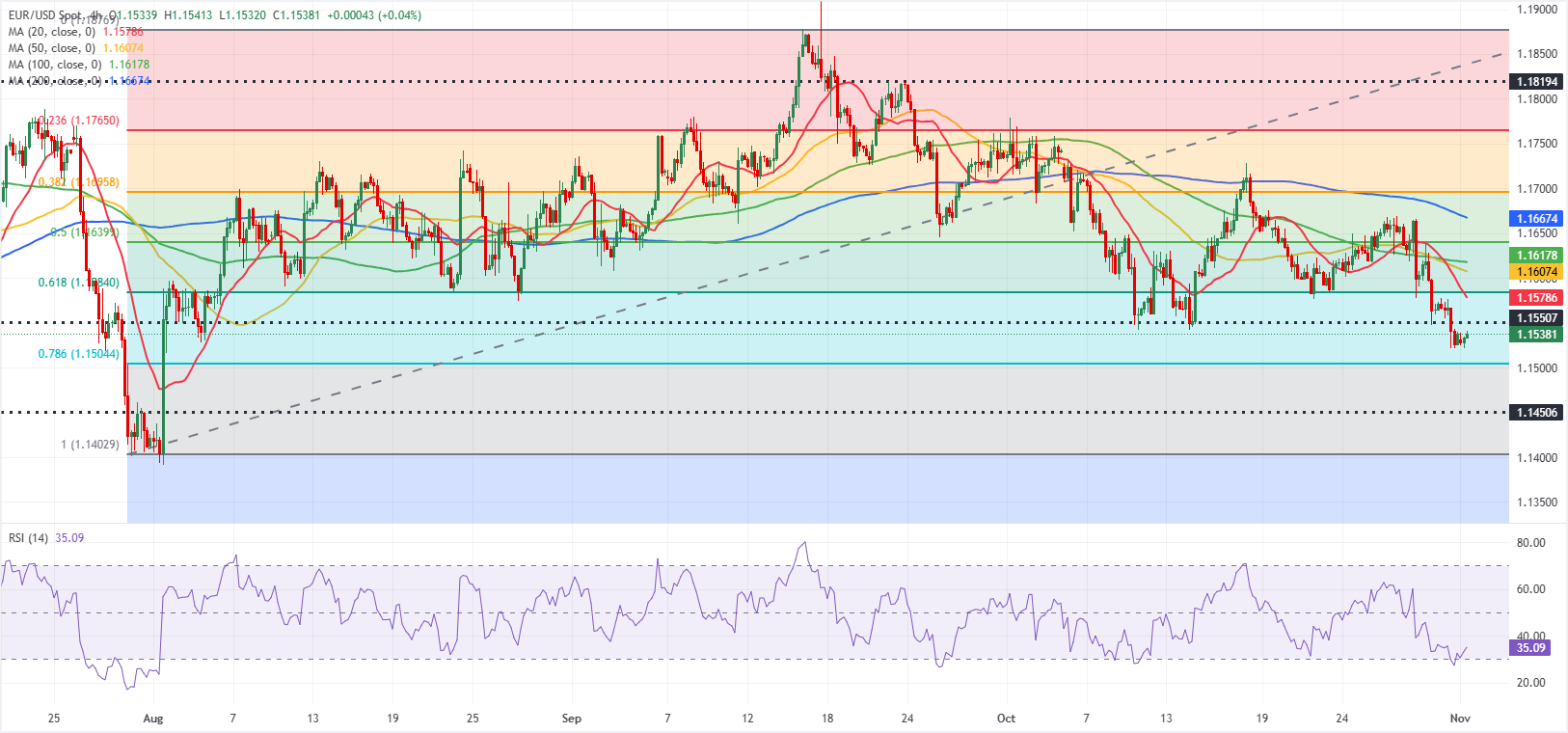 - يتم تداول زوج يورو/دولار EUR/USD أدنى بقليل من منطقة 1.1550 في بداية الأسبوع الجديد.
