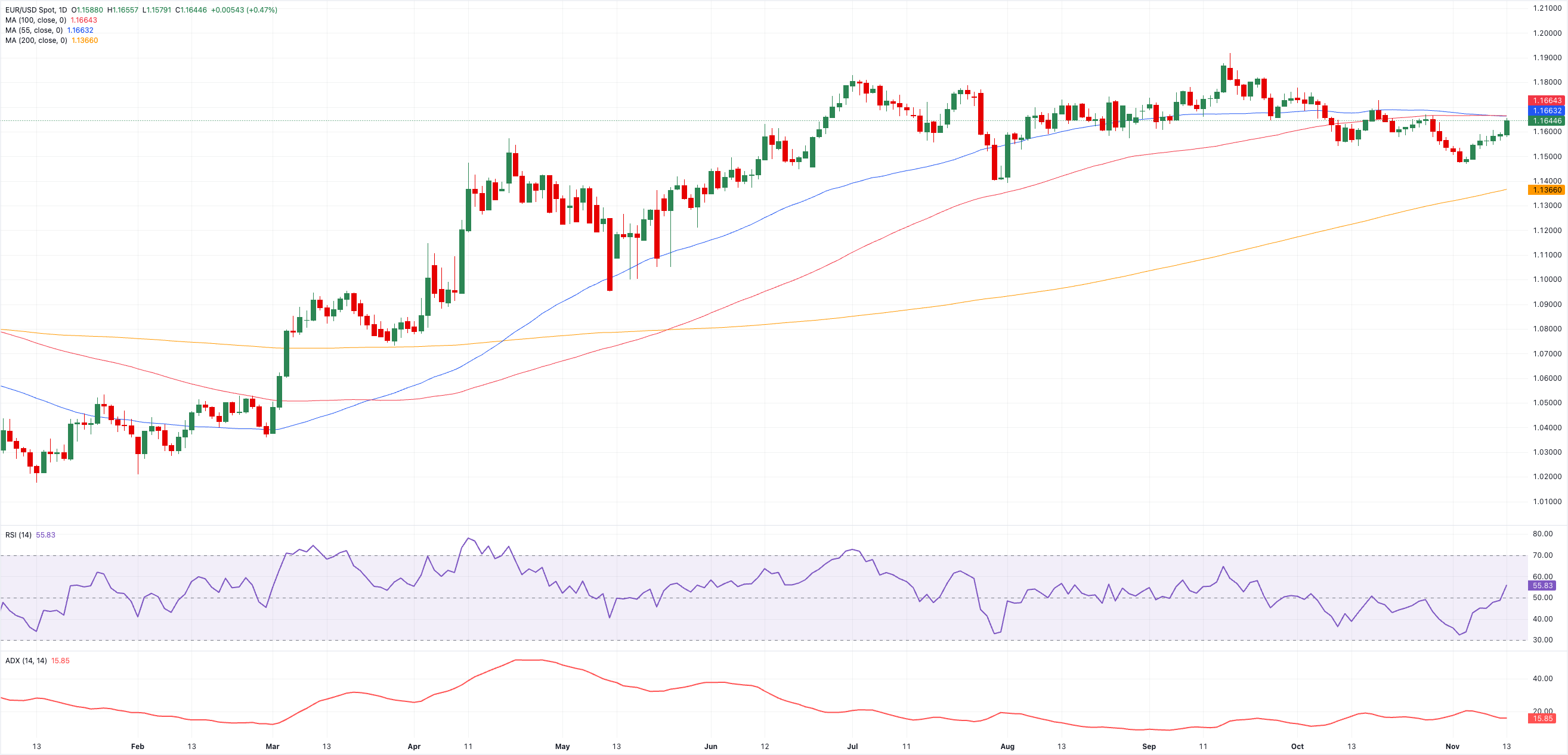 يمتد زوج يورو/دولار EUR/USD في مسيرته شمالًا، حيث يعيد زيارة منطقة 1.1650 لأول مرة منذ أواخر أكتوبر/تشرين الأول.