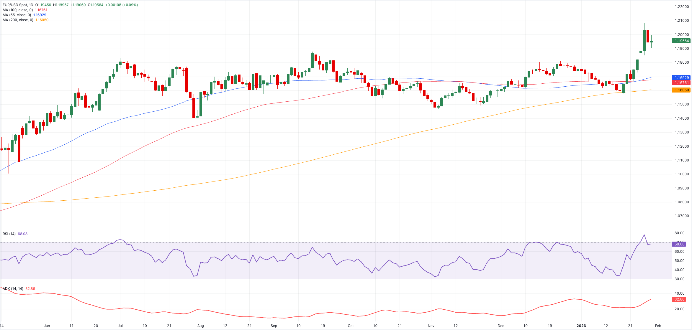 أبقى البنك المركزي الأوروبي (ECB) أيضًا على سياسته دون تغيير في اجتماعه في 18 ديسمبر، متبنيًا نبرة أكثر هدوءًا وصبرًا دفعت توقعات خفض الفائدة على المدى القريب إلى مزيد من التأخير. ساعدت التحديثات الطفيفة لتوقعات النمو والتضخم في تعزيز تلك الموقف.
