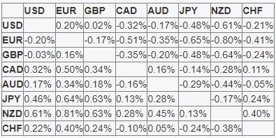 يوضح الجدول أدناه النسبة المئوية للتغير في اليورو EUR في مقابل العملات الرئيسية المدرجة هذا الأسبوع. كان اليورو هو الأضعف في مقابل الدولار النيوزيلندي.