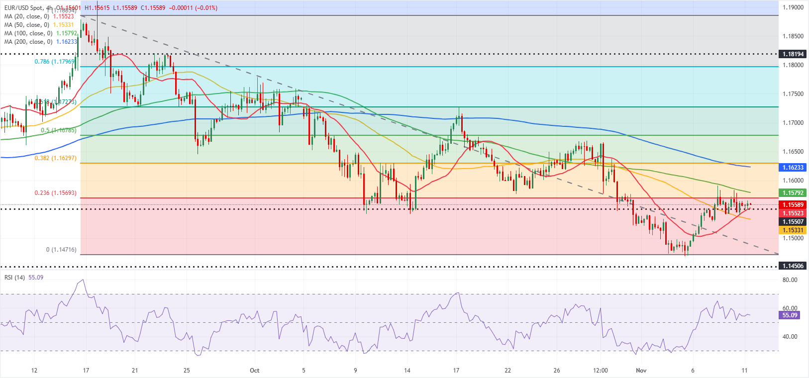 - يستمر زوج يورو/دولار EUR/USD في التداول داخل نطاق سعري ضيق حول منطقة 1.1550.