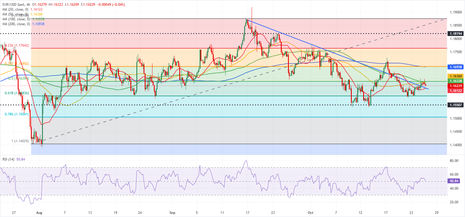 يتحرك زوج يورو/دولار EUR/USD بشكل عرضي داخل نطاق سعري ضيق فوق منطقة 1.1600 خلال جلسة التداول الأوروبية يوم الاثنين بعد إغلاق الأسبوع السابق على انخفاض طفيف. تسلط النظرة الفنية للزوج الضوء على موقف محايد على المدى القريب مع تحول تركيز السوق نحو اجتماعات السياسة النقدية للبنك الاحتياطي الفيدرالي Fed والبنك المركزي الأوروبي ECB.