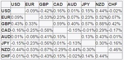 يوضح الجدول أدناه النسبة المئوية للتغير في اليورو EUR في مقابل العملات الرئيسية المدرجة هذا الأسبوع. كان اليورو هو الأقوى في مقابل الدولار النيوزيلندي.
