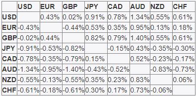 يوضح الجدول أدناه النسبة المئوية للتغير في اليورو EUR في مقابل العملات الرئيسية المدرجة هذا الأسبوع. كان اليورو هو الأضعف في مقابل الاسترليني.