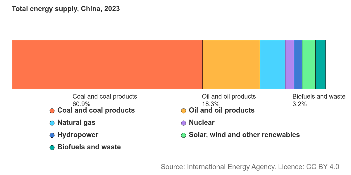 تقع الصين في مركز الطلب العالمي على الطاقة؛ إذ أنها أكبر مستورد للنفط في العالم وأحد أسرع المستهلكين لنوع الغاز الطبيعي المسال (LNG). تأتي حصة كبيرة من تلك الواردات من مناطق تقع الآن في قلب التوترات الجيوسياسية المتزايدة.
