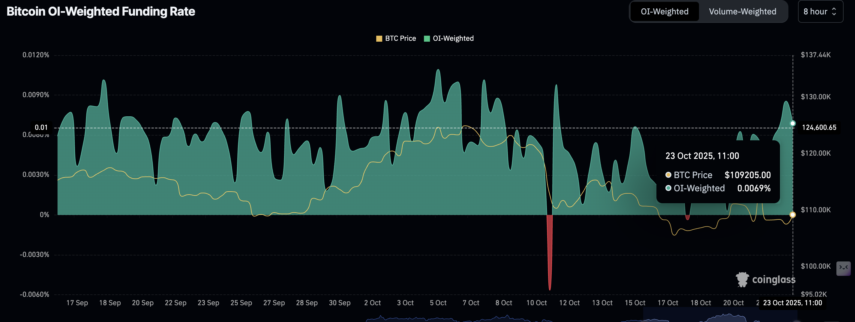 وفقًا لبيانات كوين جلاس CoinGlass، بلغ متوسط معدل التمويل المرجح بالفائدة المفتوحة 0.0069% في وقت كتابة هذا التقرير، بعد تصحيح طفيف من 0.0086% في وقت سابق من اليوم.
