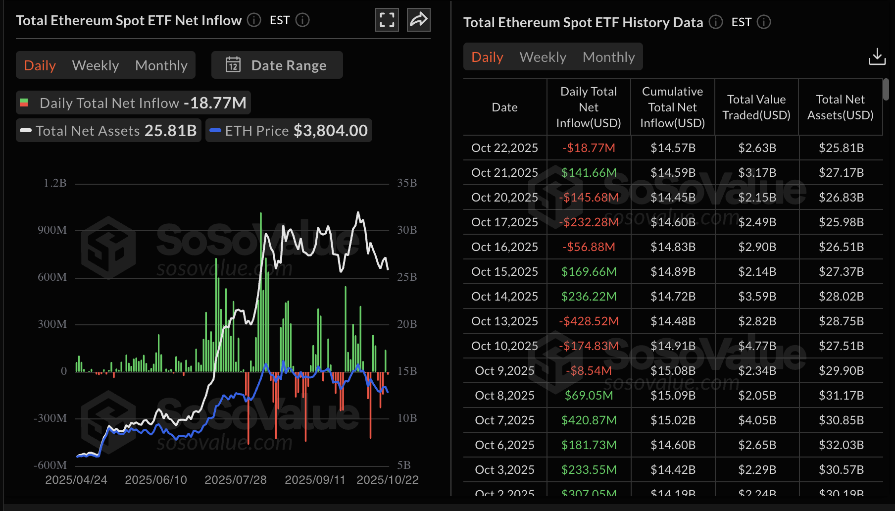 إحصائيات صناديق الاستثمار المتداولة للإيثريوم اليومية | المصدر: SoSoValue