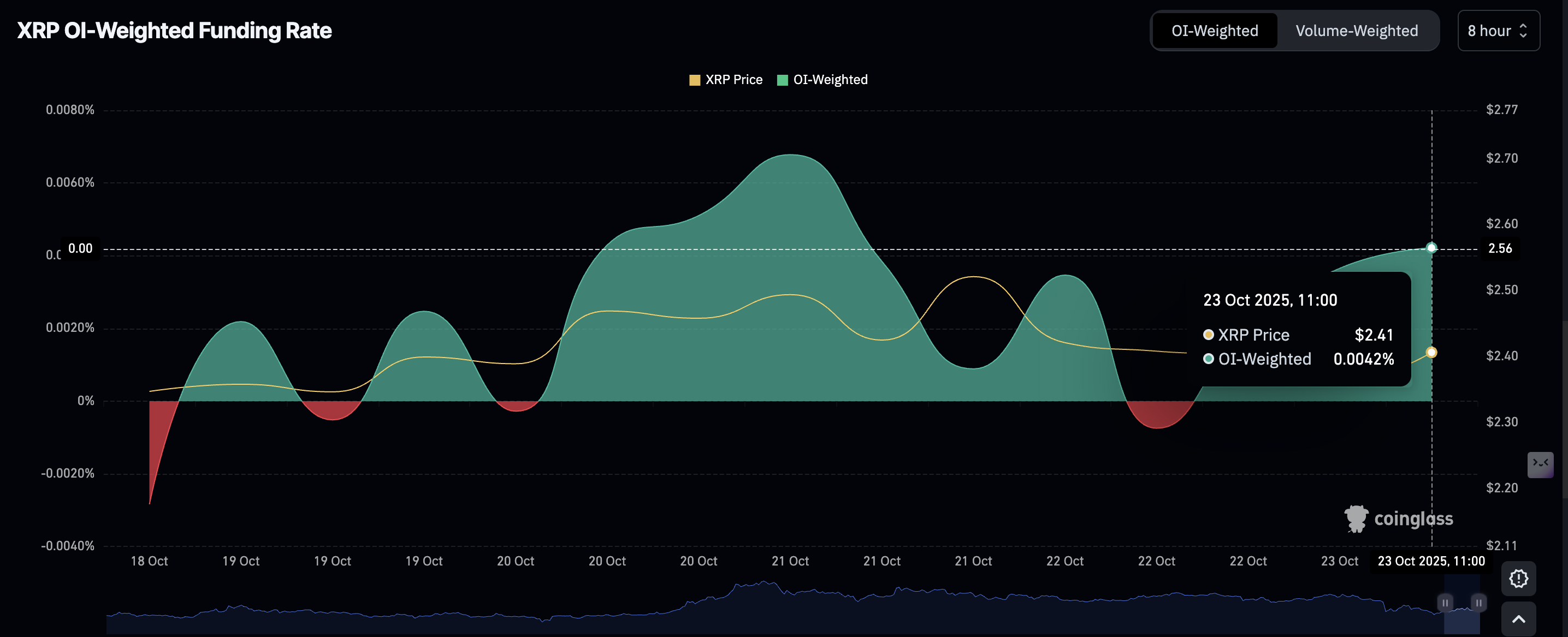 معدل التمويل المرجح بالفائدة المفتوحة للريبل | المصدر: CoinGlass