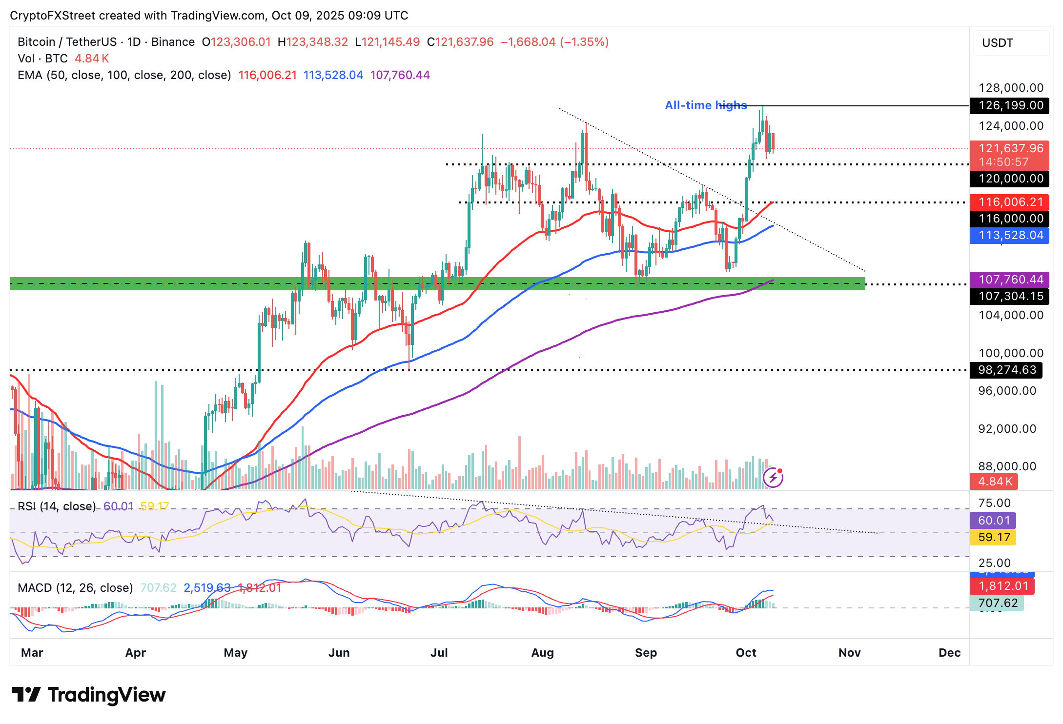 توقعات سعر البيتكوين: يتماسك قرب 122,000 دولار مع ارتفاع التدفقات الداخلية للصناديق المتداولة، وترقب خطاب باول