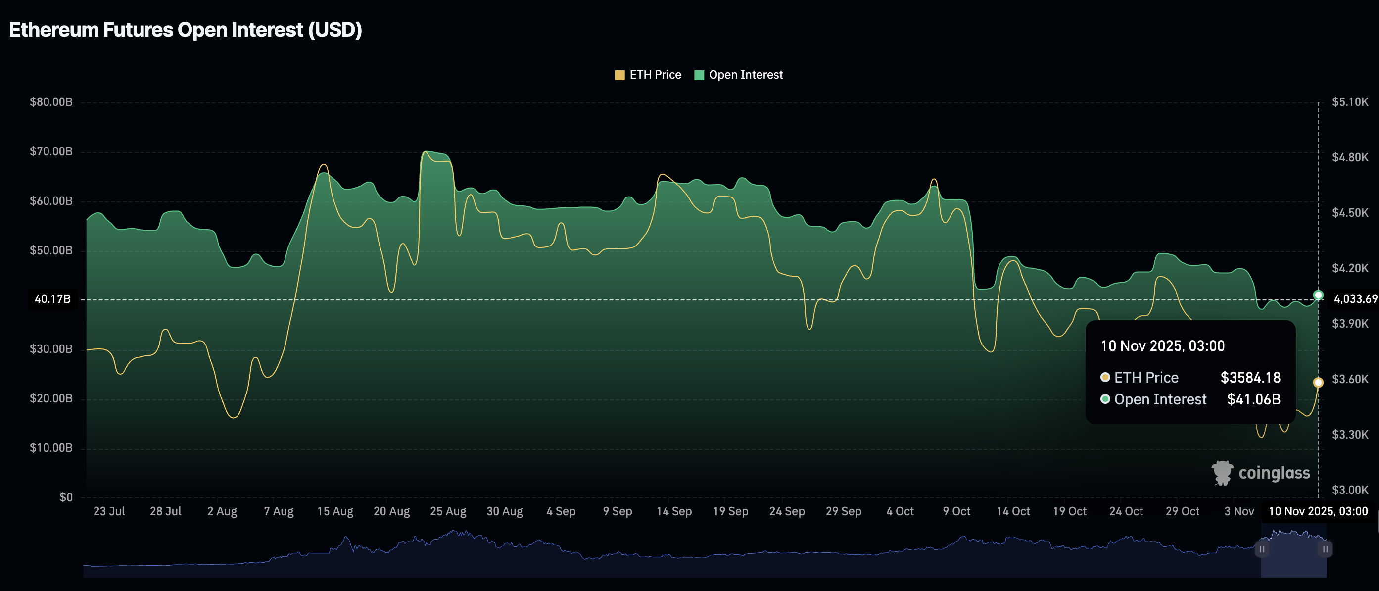 في هذه الأثناء، استقر الطلب من التجزئة على الإيثريوم، مع ارتفاع الفائدة المفتوحة للعقود الآجلة (OI) إلى 41 مليار دولار يوم الاثنين، ارتفاعًا من 39 مليار دولار في اليوم السابق. هذه الاستقرار مطلوب لتحسين ثقة المستثمرين، بعد فترة طويلة من المعنويات السلبية منذ حدث تخفيض الرافعة المالية في 10 أكتوبر/تشرين الأول.