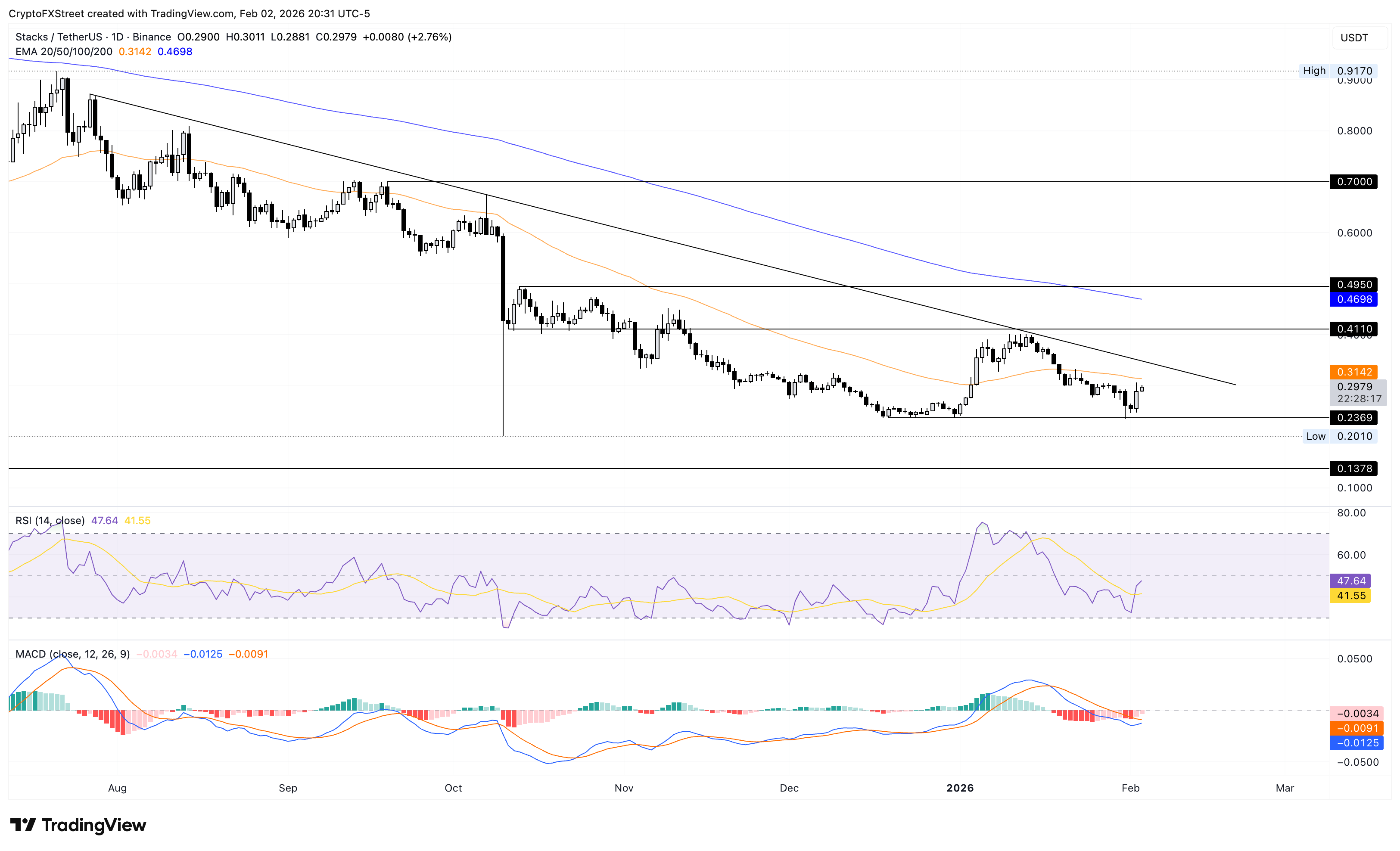 - ستاكز (Stacks) يرتفع بنحو %3 يوم الثلاثاء بعد ارتفاع بنسبة %13 يوم الاثنين، مرتدًا من مستوى دعم حاسم.