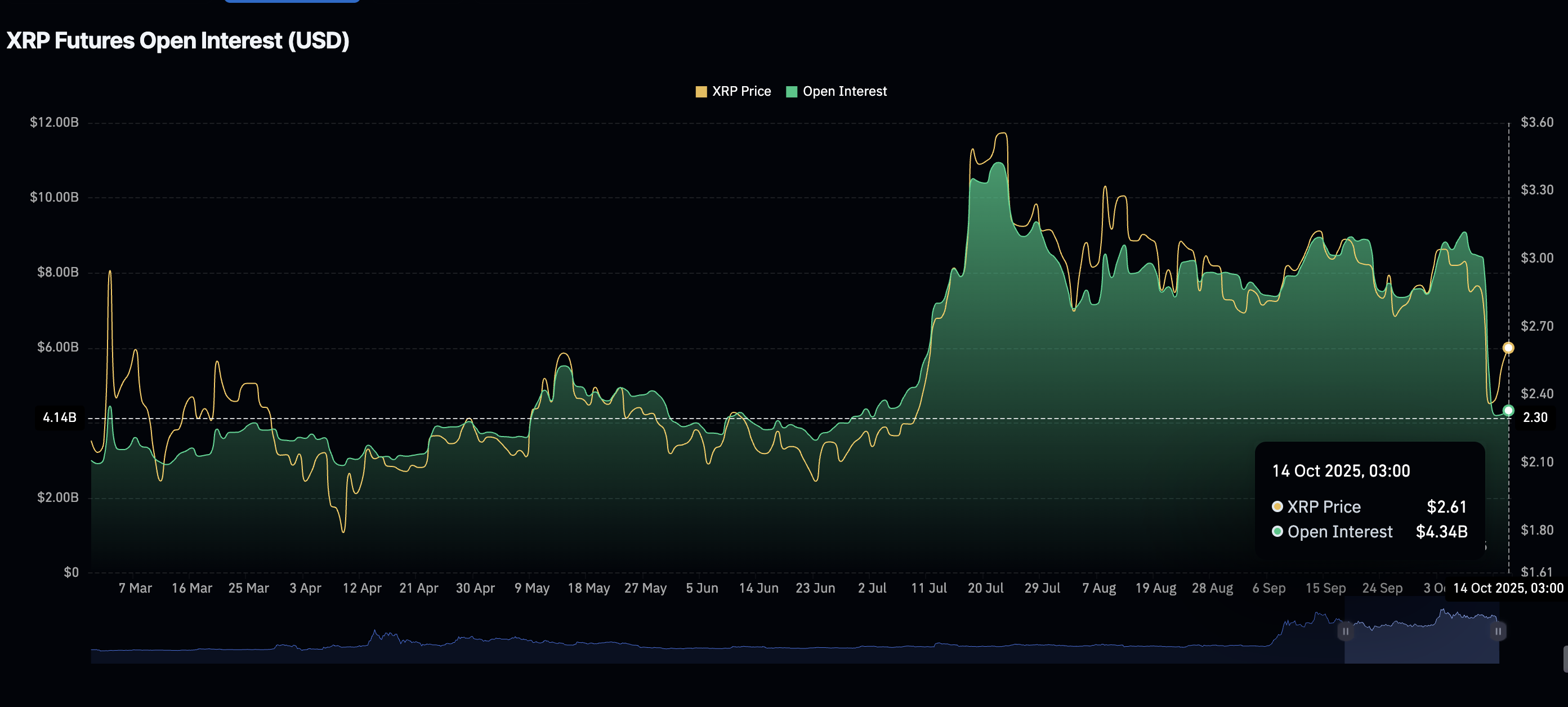 من ناحية أخرى، استقر اهتمام التجزئة بالريبل XRP خلال الأيام القليلة الماضية. ومع ذلك، لا يزال أقل بكثير من المستوى الذي تم رؤيته خلال حدث التخفيض الأسبوع الماضي، الذي أدى إلى تصفية ضخمة. يبلغ متوسط الفائدة المفتوحة لعقود الريبل الآجلة 4.34 مليار دولار يوم الثلاثاء، بعد أن زادت إلى حوالي 9 مليون دولار في 7 أكتوبر.