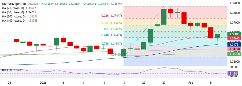 توقعات سعر زوج استرليني/دولار GBP/USD: يتمسك بالتحيز الصعودي على المدى المتوسط فوق منطقة 1.3600