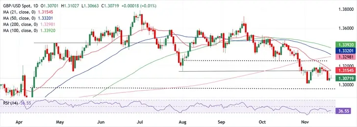 يتداول زوج استرليني/دولار GBP/USD دون 1.3100 وسط قوة الدولار الأمريكي، وعدم اليقين بشأن ميزانية المملكة المتحدة