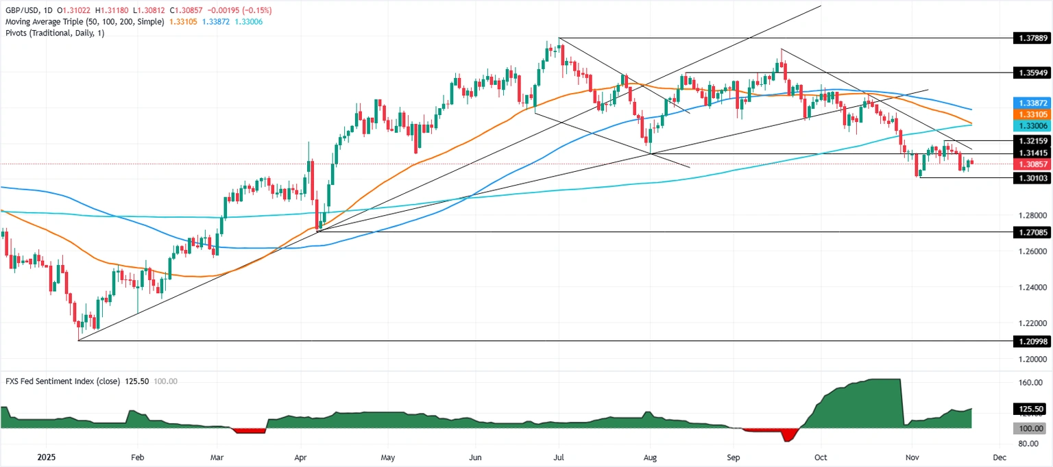 يتداول زوج استرليني/دولار GBP/USD دون 1.3100 وسط قوة الدولار الأمريكي، وعدم اليقين بشأن ميزانية المملكة المتحدة