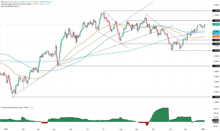 زوج استرليني/دولار GBP/USD يستعيد 1.3500 مع تراجع الدولار الأمريكي بسبب صدمة جيوسياسية وبيانات ضعيفة