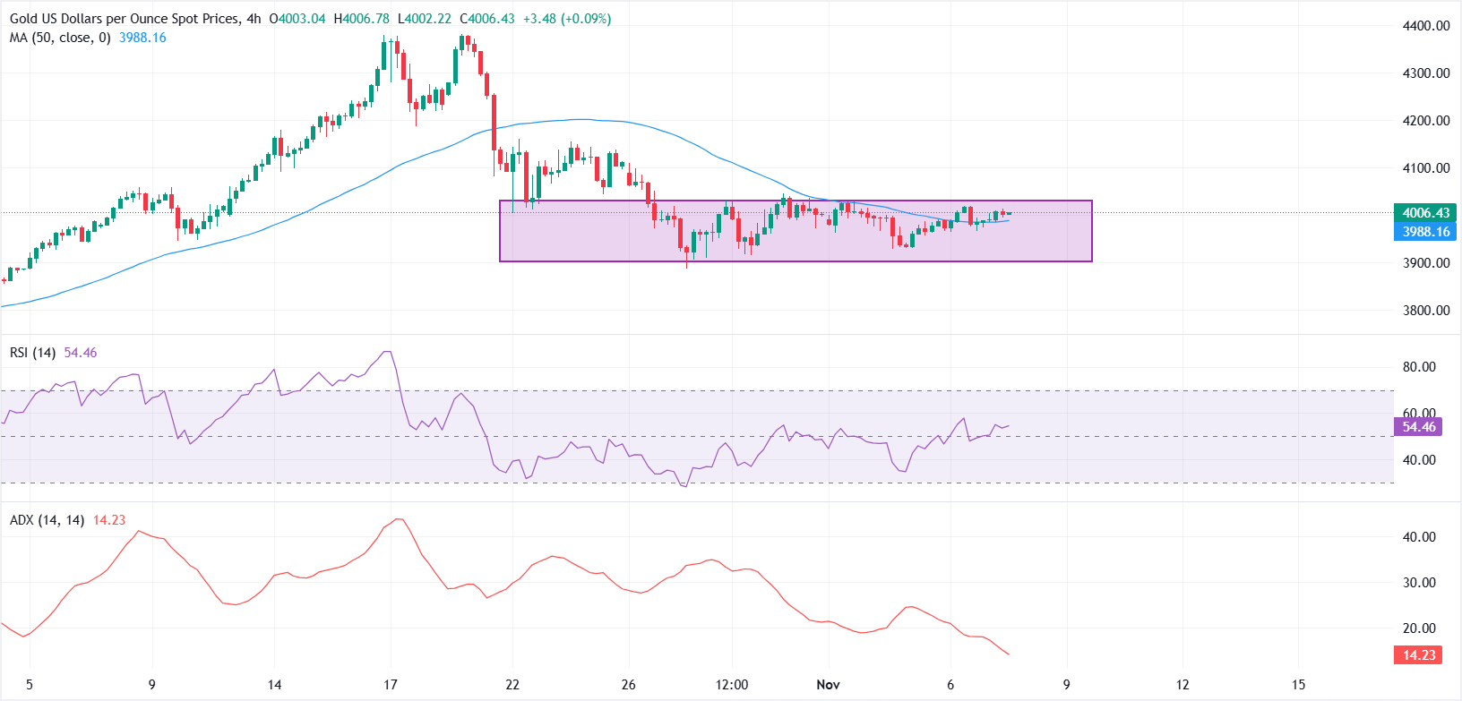 التحليل الفني: زوج الذهب/الدولار XAU/USD محصور في نطاق بالقرب من 4000 دولار مع زخم ضعيف