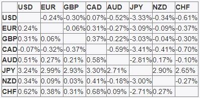يوضح الجدول أدناه النسبة المئوية للتغير في الدولار الأمريكي USD في مقابل العملات الرئيسية المدرجة هذا الأسبوع. كان الدولار الأمريكي هو الأضعف في مقابل الين الياباني.