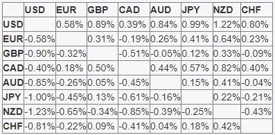 يوضح الجدول أدناه النسبة المئوية للتغير في الدولار الأمريكي USD في مقابل العملات الرئيسية المدرجة هذا الأسبوع. كان الدولار الأمريكي هو الأقوى في مقابل الدولار النيوزيلندي.