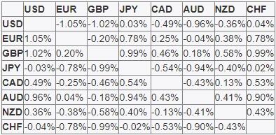يوضح الجدول أدناه النسبة المئوية للتغير في الدولار الأمريكي USD في مقابل العملات الرئيسية المدرجة هذا الأسبوع. كان الدولار الأمريكي هو الأضعف في مقابل اليورو.