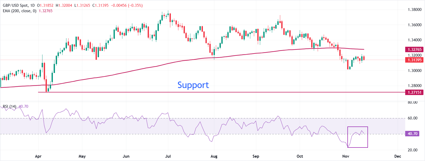 ينخفض الجنيه الإسترليني إلى حوالي 1.3130 مقابل الدولار الأمريكي يوم الجمعة. الاتجاه العام للزوج لا يزال هبوطيًا حيث يتم تداوله دون المتوسط المتحرك الأسي لمدة 200 يوم (EMA)، والذي يقع حول 1.3276.