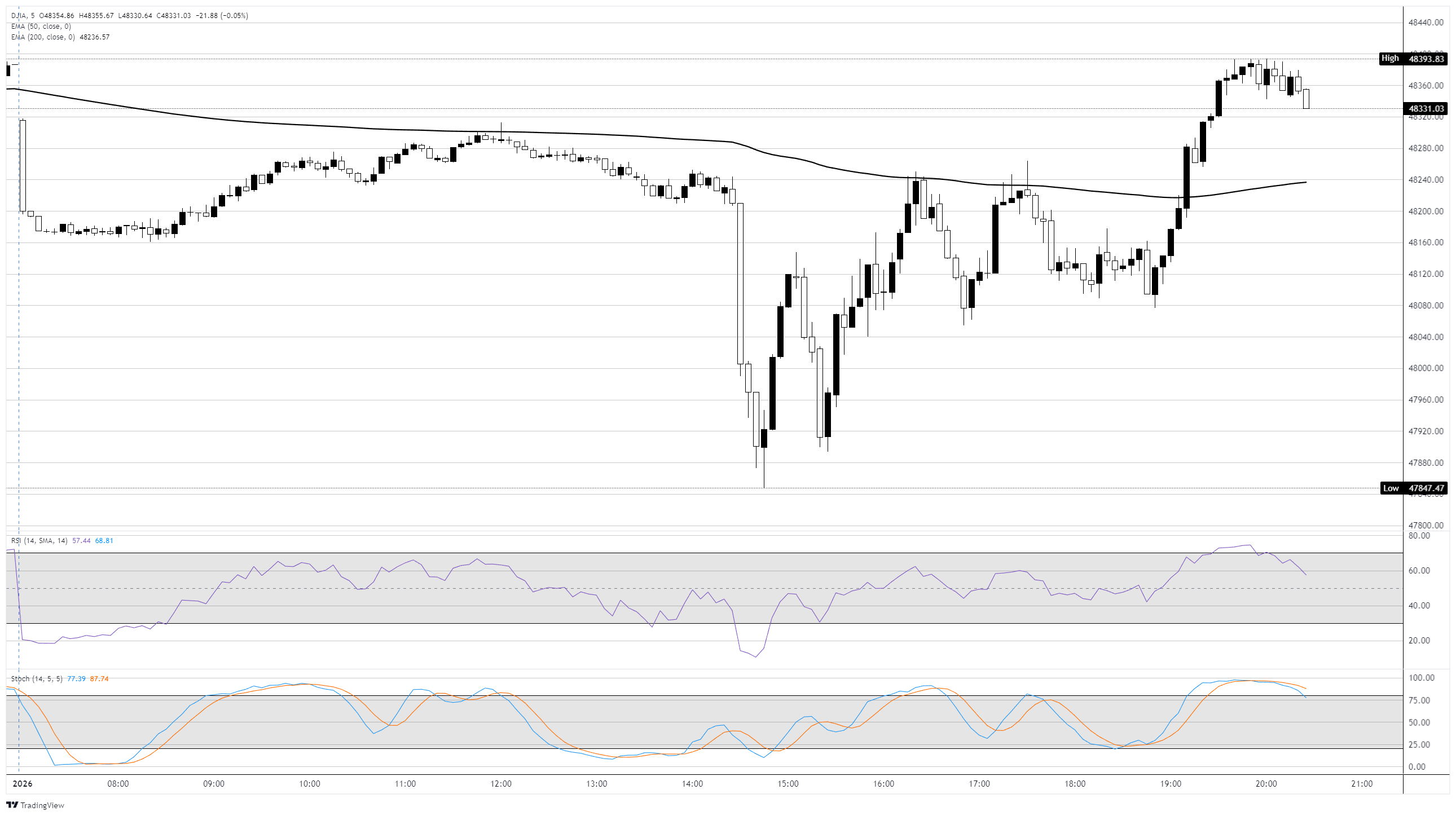 مخطط داو جونز لمدة 5 دقائق