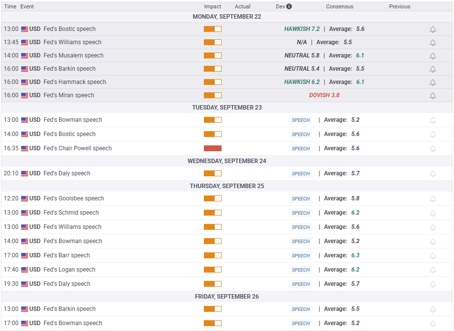 - سيقوم العديد من صانعي السياسة في البنك الاحتياطي الفيدرالي بإلقاء خطابات على مدار الأسبوع.