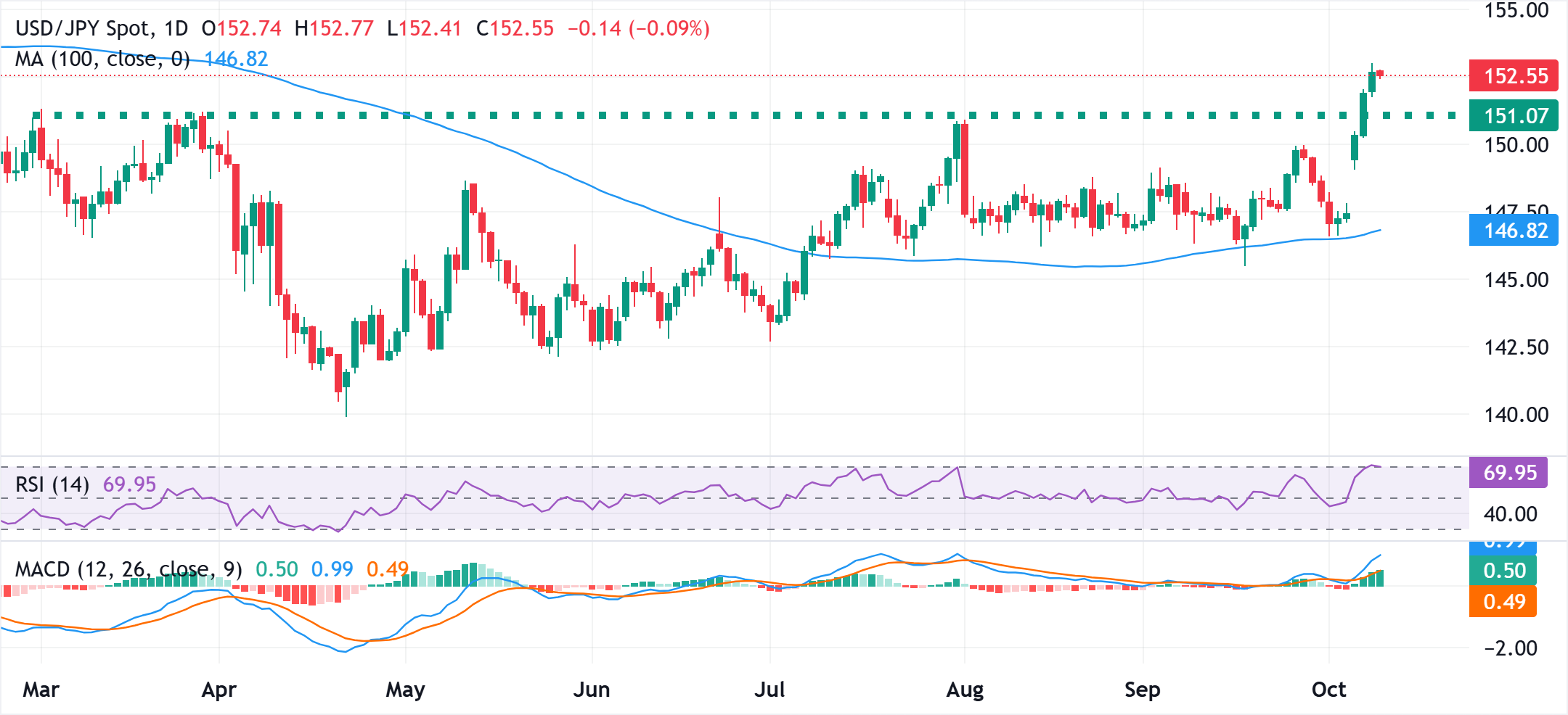 من المحتمل أن يجذب زوج الدولار الأمريكي/الين الياباني بعض المشترين عند الانخفاض ويجد دعمًا جيدًا بالقرب من مستوى 152.00