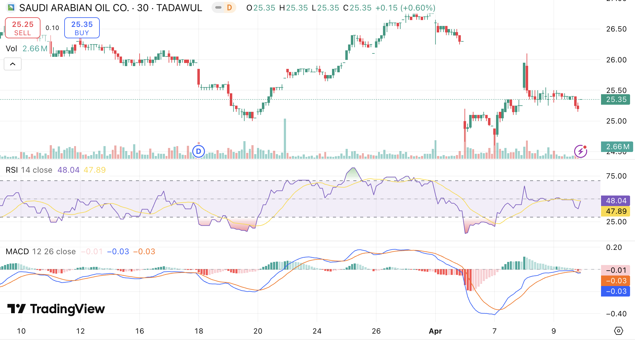 واصل سهم أرامكو السعودية تماسكه النسبي في تداولات الأربعاء 9 أبريل/نيسان 2025، رغم اشتداد الضغوط على الأسواق العالمية وأسعار النفط - التي انخفضت إلى أدنى مستوياتها منذ أربع سنوات - بفعل التصعيد في الحرب التجارية بين الصين والولايات المتحدة. ورغم هذه الأجواء، أبدى السهم مقاومة نسبية للتقلبات، مستفيدًا من إعلان عن توسع استراتيجي في قطاع البتروكيماويات ضمن شراكة جديدة مع "سينوبك" الصينية.