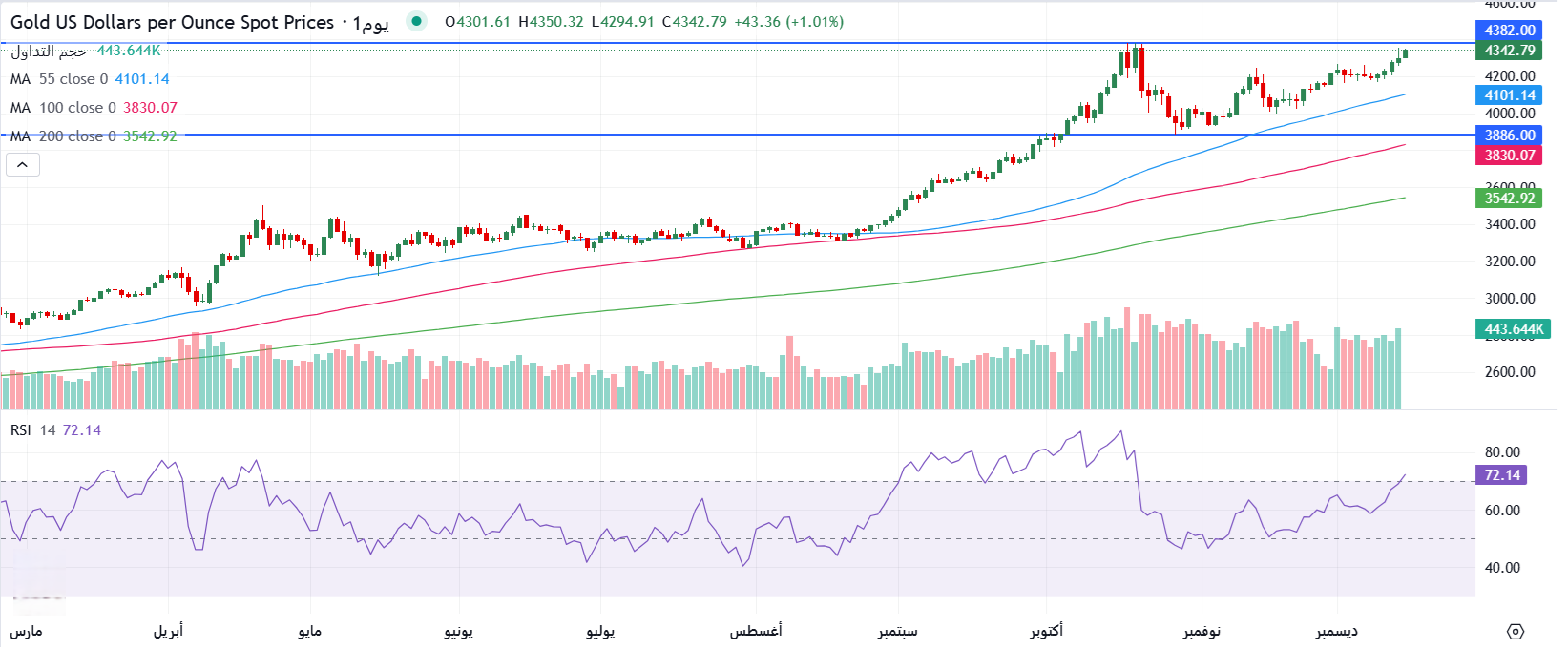الرسم البياني اليومي لأسعار أونصة الذهب في الأسواق العالمية