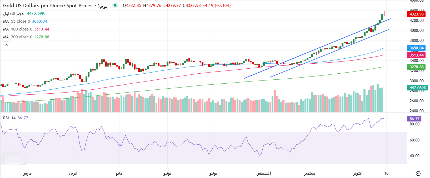 الرسم البياني اليومي لأسعار أونصة الذهب في الأسواق العالمية