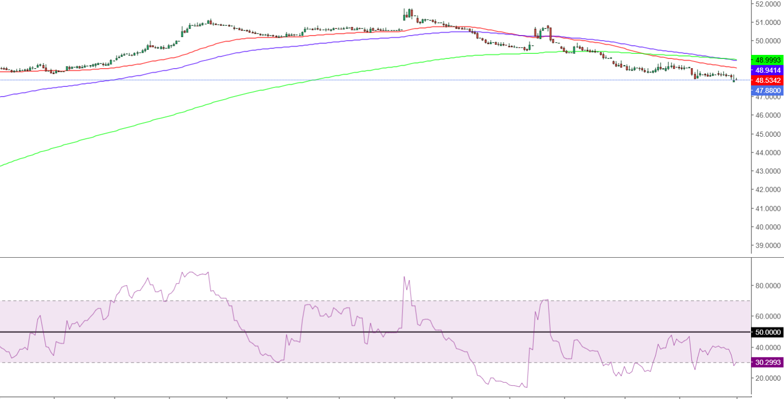 - يرتد مؤشر القوة النسبية RSI بإعدادات 14 يوماً من مناطق التشبع البيعي، حيث يتحرك حول مستويات 31 في وقت كتابة هذا التقرير.