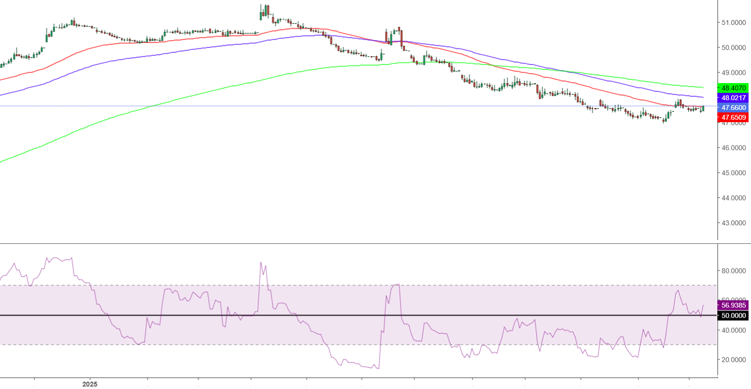 - يتم تداول زوج دولار أمريكي/جنيه مصري USD/EGP بشكل عرضي مستقر عند محيط منطقة 47.47، مستقر إلى حد كبير مقارنة بأسعار إغلاق يوم أمس، في وقت كتابة هذا التقرير.