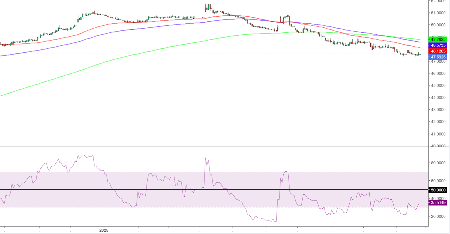 بنك التعمير والإسكان: 47.50 جنيه للشراء، 47.6 جنيه للبيع.