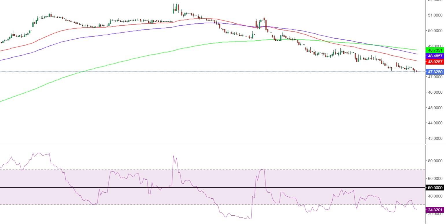 - ينخفض زوج دولار أمريكي/جنيه مصري USD/EGP إلى محيط أدنى مستوياته خلال ما يقرب من 16 شهراً المسجلة يوم أمس عند محيط منطقة 47.30، منخفضاً مقارنة بمستويات إغلاق يوم أمس، في وقت كتابة هذا التقرير.