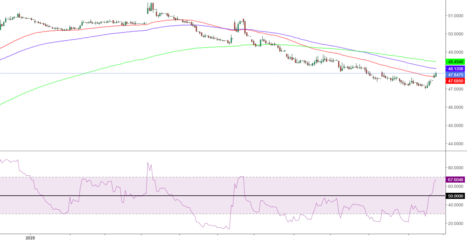 - يمدد زوج دولار أمريكي/جنيه مصري USD/EGP الارتفاع القوي إلى محيط منطقة 47.76، مرتفعاً مقارنة بأسعار إغلاق يوم أمس، في وقت كتابة هذا التقرير.