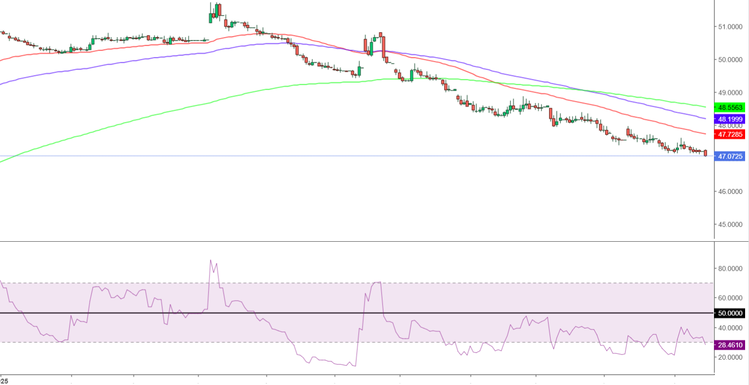 - يتراجع زوج دولار أمريكي/جنيه مصري USD/EGP إلى محيط منطقة 47.03، منخفضاً لليوم الثامن على التوالي، في وقت كتابة هذا التقرير.