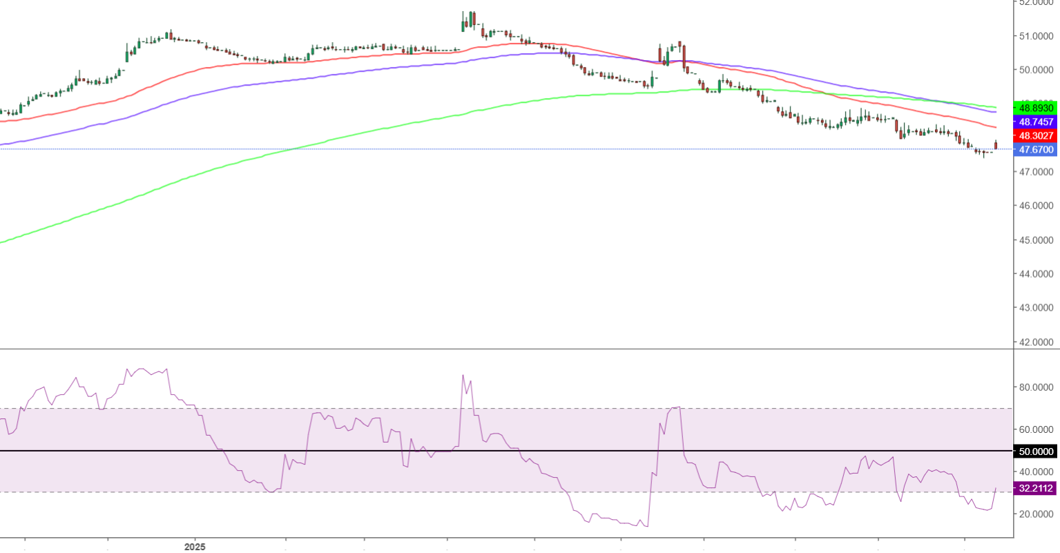 - يتم تداول زوج دولار أمريكي/جنيه مصري USD/EGP على انخفاض طفيف عند محيط منطقة 47.76، مقلصاً ارتفاع يوم أمس، في وقت كتابة هذا التقرير.