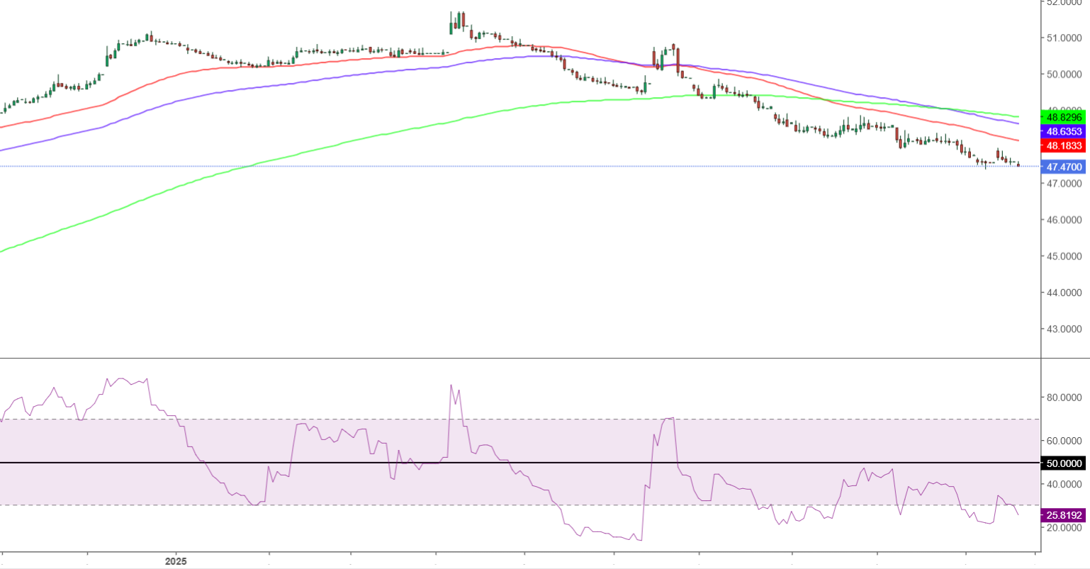 - يتم تداول زوج دولار أمريكي/جنيه مصري USD/EGP بشكل عرضي بالقرب من أدنى مستوياته خلال 16 شهراً عند محيط منطقة 47.50، دون تغيير يُذكر مقارنة بمستويات إغلاق يوم أمس، في وقت كتابة هذا التقرير.