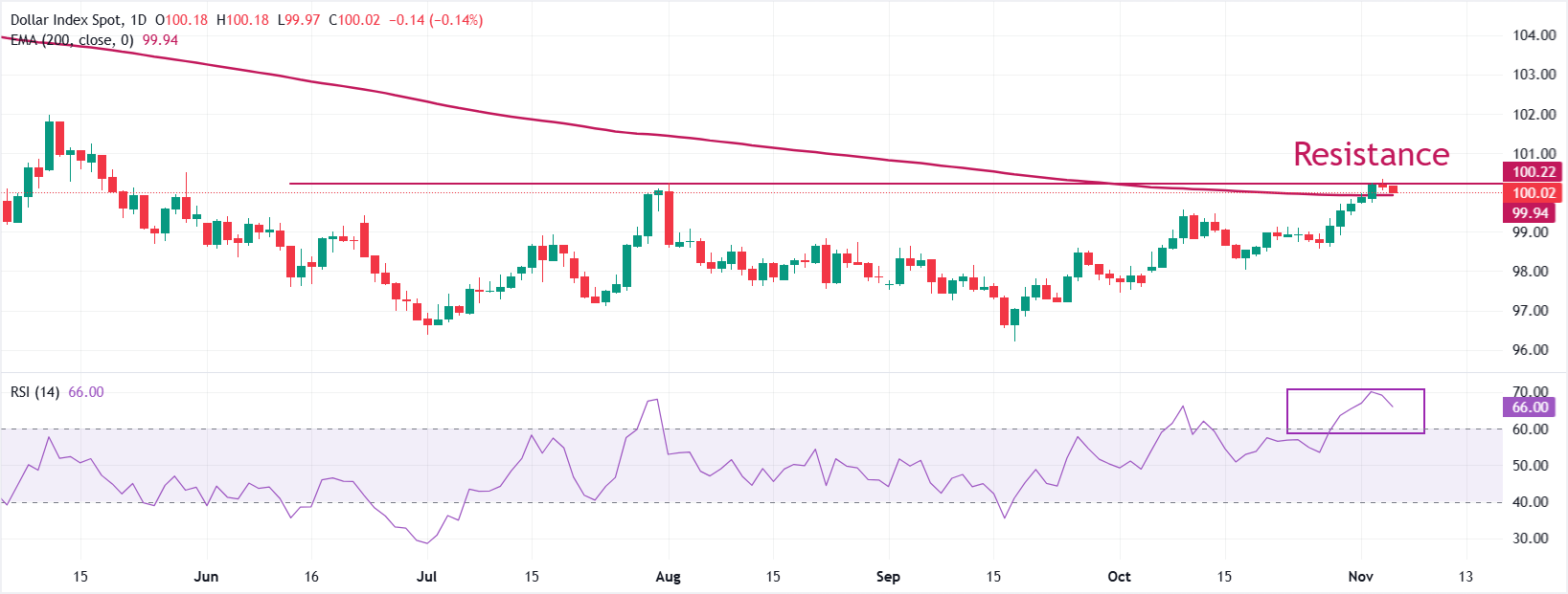 - يمكن أن يرتفع مؤشر الدولار الأمريكي DXY بشكل أكبر نحو منطقة 102.00.