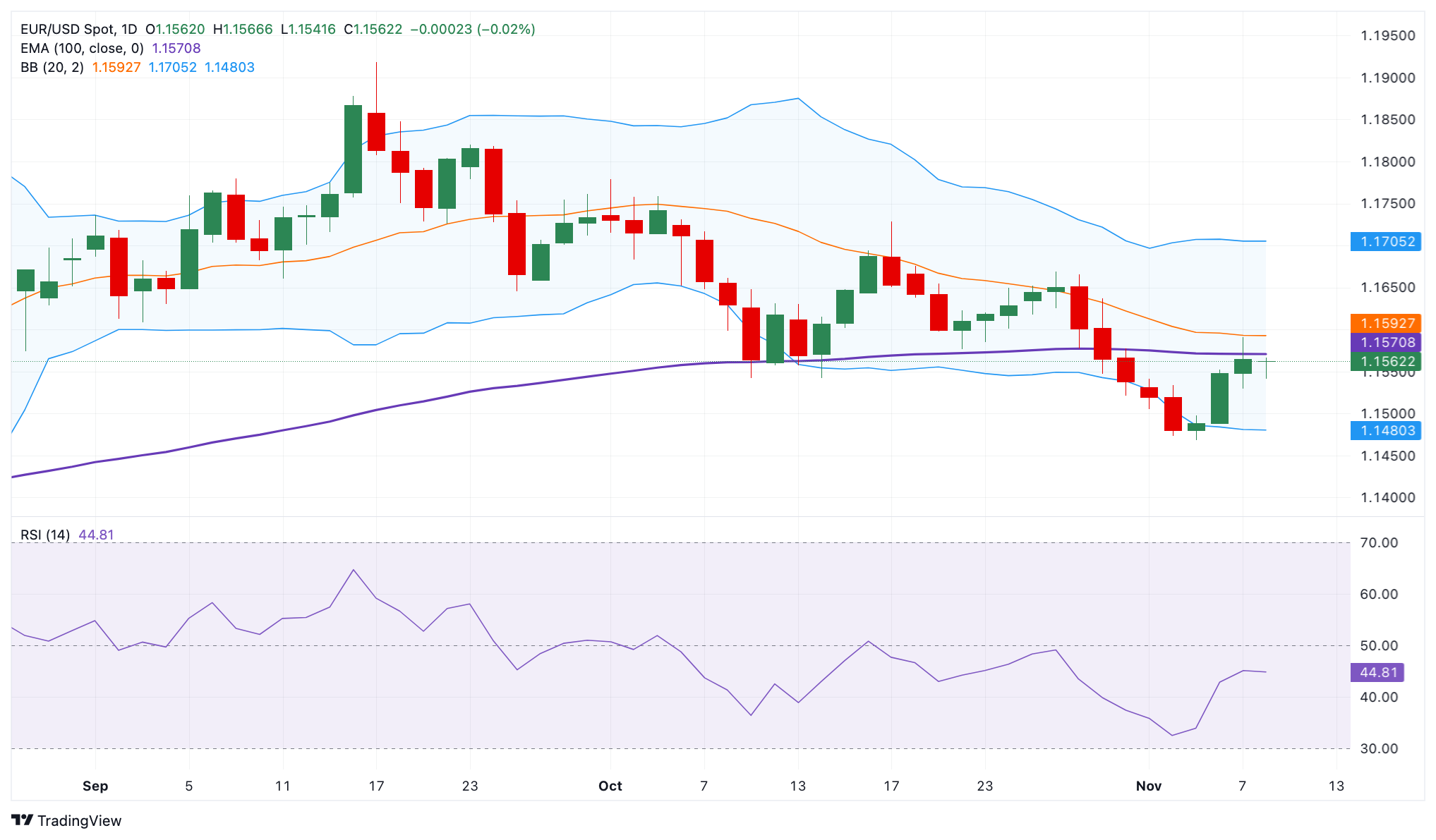 يتم تداول زوج يورو/دولار EUR/USD على خسائر طفيفة بالقرب من منطقة 1.1565 خلال جلسة التداول الأوروبية المبكرة يوم الأربعاء. يرتفع الدولار الأمريكي USD في مقابل اليورو EUR وسط آمال بأن تعطيل الحكومة الأمريكية قد ينتهي قريبًا. سوف يتم إصدار تقرير ثقة المستثمرين Sentix في منطقة اليورو لشهر نوفمبر/تشرين الثاني في وقت لاحق من يوم الاثنين.
