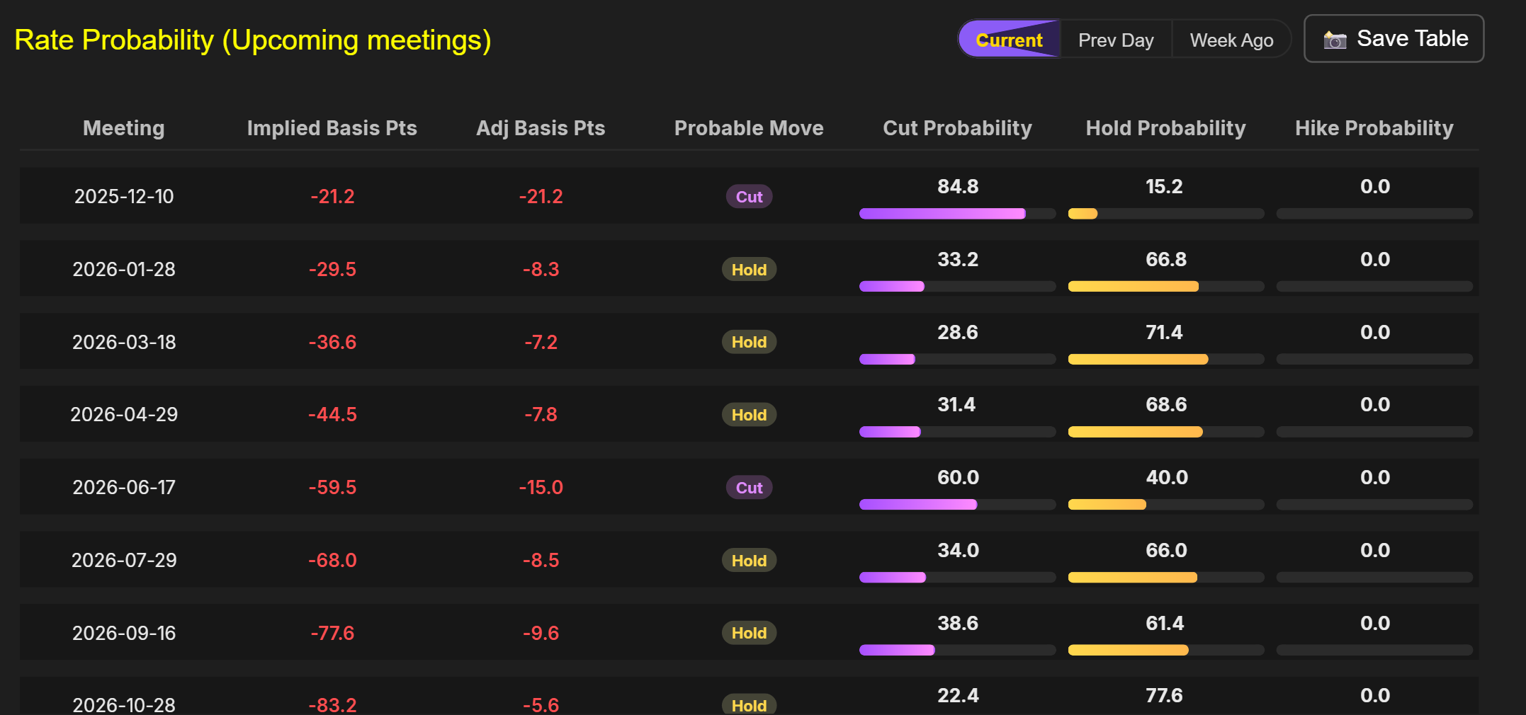 أظهرت بيانات من Capital Edge أن أسواق المال قد قامت بتسعير فرصة بنسبة 85% لخفض بمقدار 25 نقطة أساس، حيث أشارت المنحنيات إلى 21.2 نقطة أساس من التخفيضات حتى وقت كتابة هذا التقرير. بالنسبة لعام 2026، قام المستثمرون بتسعير 88.5 نقطة أساس، مما يعني أن معدل الفائدة الفيدرالي قد ينتهي عند 2.99%.